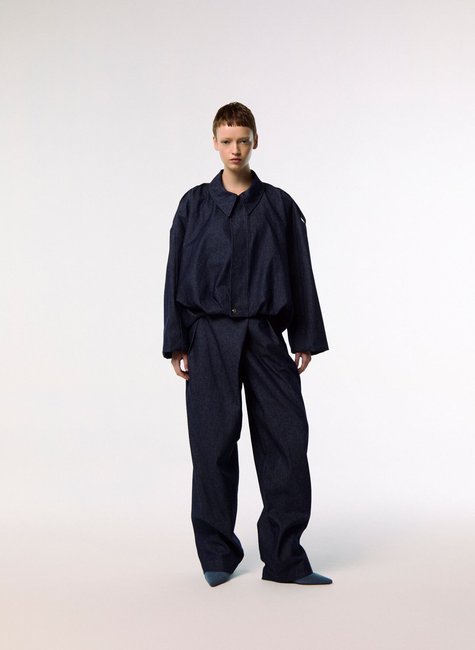 Confeccionada integralmente em jeans, a peça apresenta base estruturada e visual contemporâneo. O tecido valoriza a modelagem e mantém o caimento alinhado.