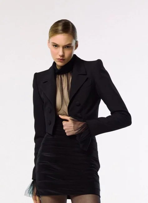 Spencer, também conhecido como blazer croped e casaco curto, feito em alfaiataria Madrid com proposta contemporânea e visual alinhado. O modelo apresenta gola com lapela clássica que reforça a leitura de alfaiataria, enquanto os ombros estruturados trazem presença ao shape. As mangas longas acompanham a construção da peça com acabamento preciso. O fechamento frontal por botão forrado mantém a frente limpa e moderna. Um blazer versátil para composições urbanas e produções mais polidas do dia à noite.