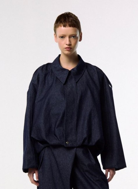 Confeccionada em jeans, a jaqueta apresenta base estruturada e visual atual. O tecido valoriza a modelagem e sustenta o volume característico do modelo bomber.