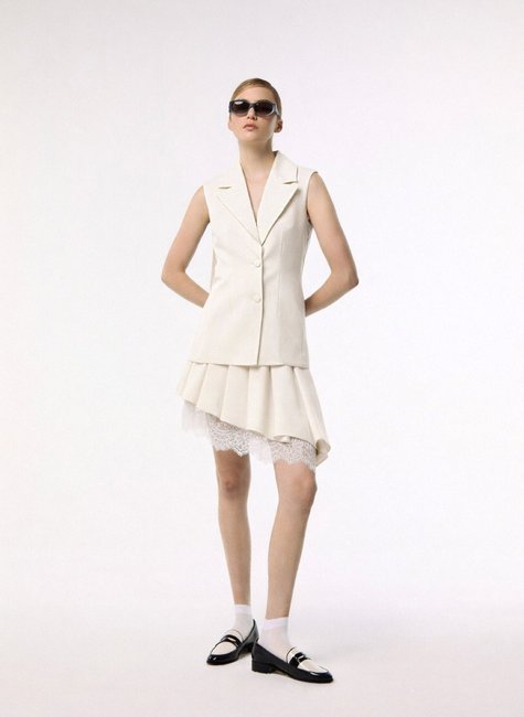 Mini saia de alfaiataria em Madrid com proposta contemporânea e silhueta feminina. O modelo apresenta cós estruturado com passantes para cinto opcional, permitindo diferentes composições de styling. Abaixo do cós, as pregas percorrem toda a peça, criando movimento e leveza ao visual. Internamente, o detalhe em renda acrescenta um toque delicado e inesperado ao acabamento. Uma peça versátil e atual, ideal para produções urbanas sofisticadas e combinações elegantes do dia à noite