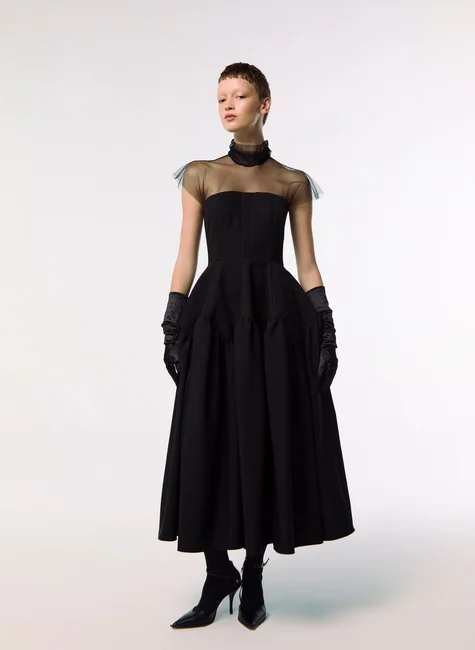- 1 Vestido Midi Estruturado Alfaiataria e Tule - Z.Vitor